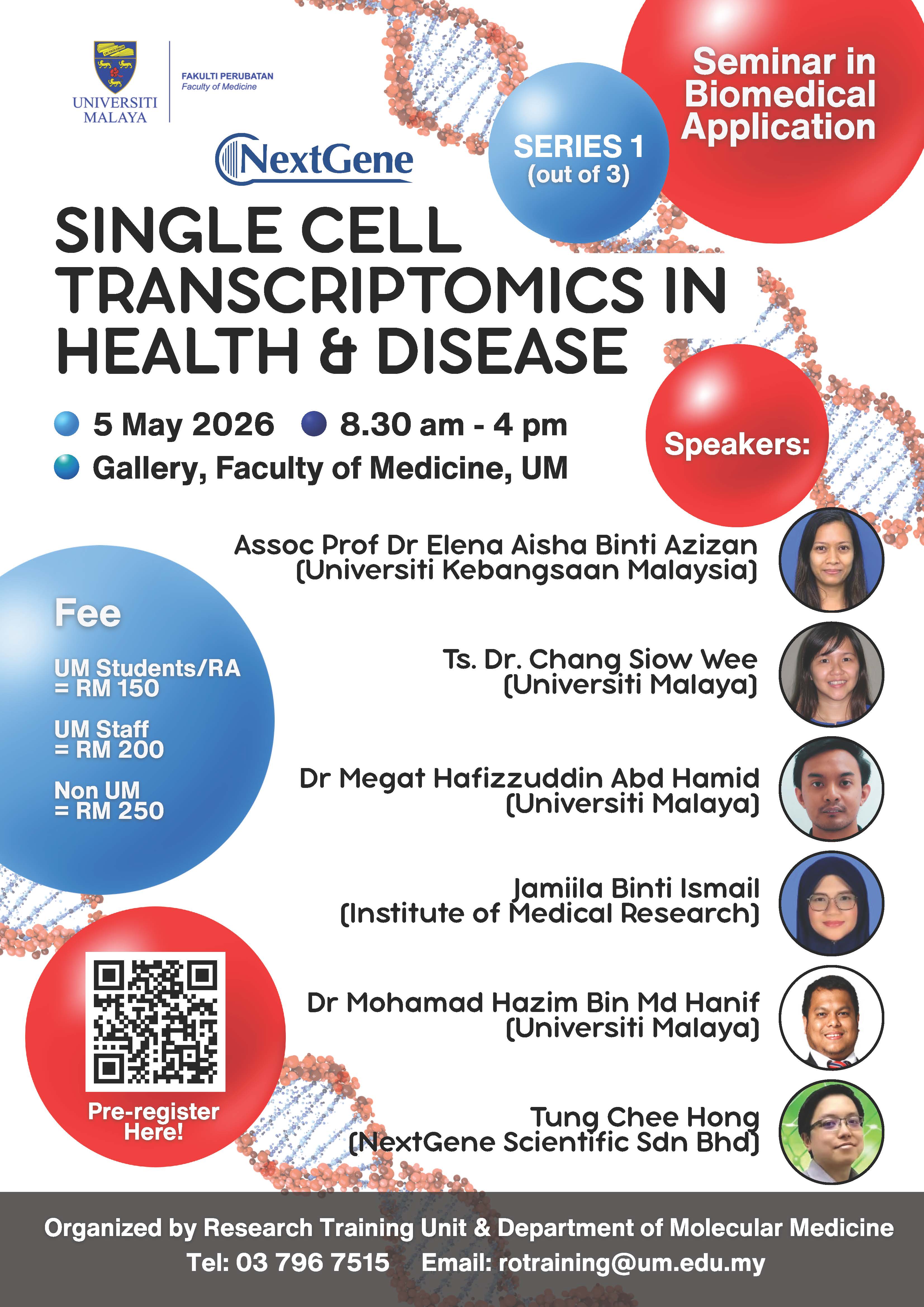 Registration link: REG: Workshop: Single Cell Transcriptomics in Health & Disease
